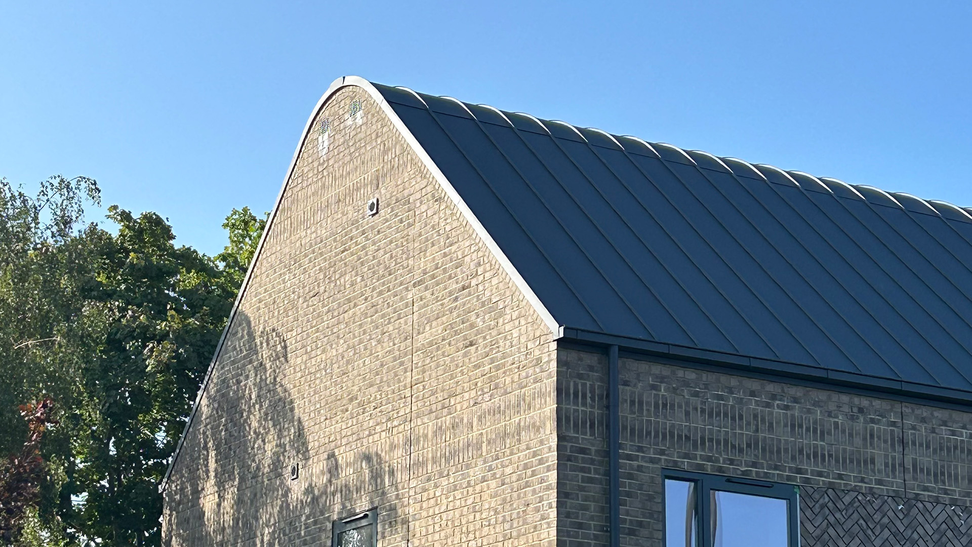 Byggnadens strategiska hörnläge har tagits tillvara och förstärkts via det välvda sadeltaket i färgbelagd stålplåt. Kombinationen av den mjuka takformen och de lekfulla tegeldetaljerna på fasaden har gjort servicebostaden i Holtwhites Hill till en uppskattad samtida tolkning av närliggande arkitektur. Takets utformning har också gjort det möjligt att maximera boendeytan på andra våningen, samt att inrymma ett hissmaskinrum utan att behöva höja nockhöjden.